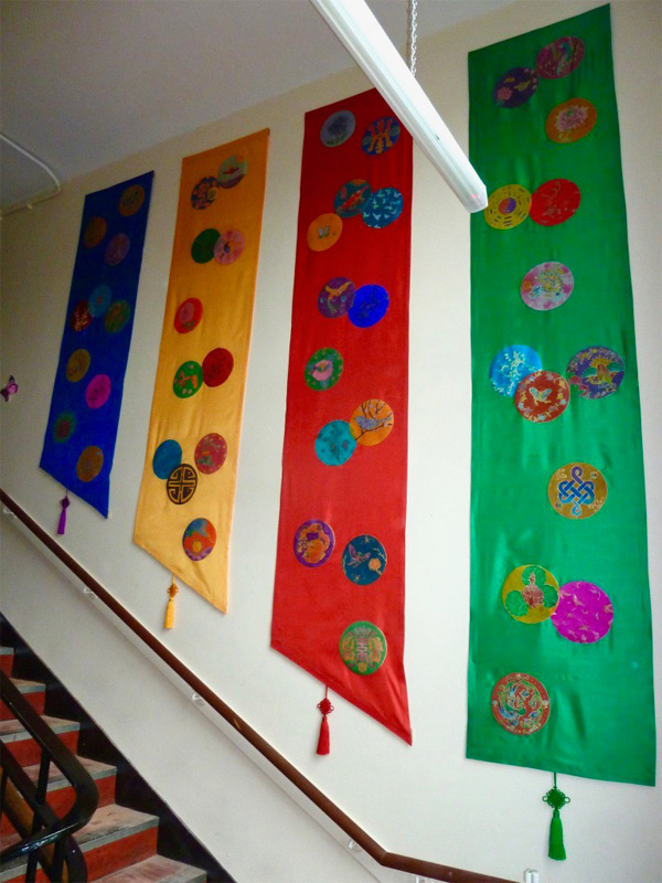 Can be made to any themes required using paints, transfers and other textile techniques – all professionally installed. These are made working in small groups of 6-8 children at a time.
